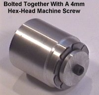 The front-end of the intake body has a tapered hole which creates a venturi section where the fuel jet will sit. The initial size of this air-intake hole may be a little small for maximum power but I've decided to err on the side of better fuel draw by having a higher air velocity through the venturi. Once I have this version of the engine running I'll be playing around with the construction of a tuneable intake venturi and a throttle. I also turned down a lip on the intake by the wall thickness of the combustion chamber tube so it will fit inside. The intake assembly will be affixed to the combustion chamber by 4 machine screws around the circumference which will screw into tapped holes. More pictures of the intake body can be found on the components page.