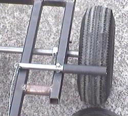 Testing The Chasis So... I grabbed one of my midi-sized pulse-jets (about 30 lbs thrust) and bolted it to the side of the kart. As I mentioned -- the kart doesn't even have a seat yet so I clamped a piece of wood onto two cross-members to stop my backside from scraping along the cement. This board was also a handly place to lash the 20lb propane tank which provides the fuel for this jet.