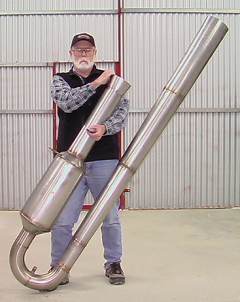 I'll be addressing both these issues in the near future -- but my thrust figures seem to be very similar to those obtained by Paul Sherman with his Lockwood. I recently came across another home-built Lockwood project page on the Net but the builder says that no thrust measurements for this engine have yet been made. One very interesting thing I noticed immediately about the Lockwood is that it's a lot louder than my 100lbs conventional engine. Maybe it's because it pushes gases out of two holes, and perhaps that conical tailpipe acts as a rather impressive megaphone but it's sure a noisy beast -- even by pulsejet standards.