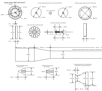 On top of this, the design of the PJ8 and PJ15 valve systems includes a revolutionary 3-part "stacked" valve retainer that further protects the valves from heat-damage while actually improving the speed of valve actuation. The overall engine design and the valving system have been optimized to extract the maximum available amount of power that can be obtained from the traditional pulsejet layout. (sample plans).